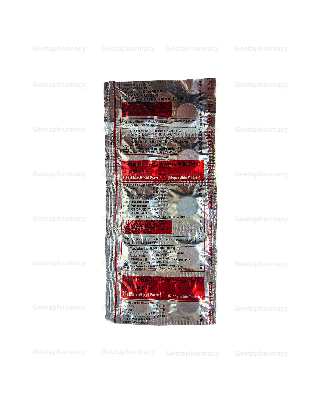 Rifa I-6 Kid Forte Tablet is a pediatric formulation designed for the treatment of tuberculosis (TB) in children. This combination therapy includes Rifampicin and Isoniazid, two potent anti-TB agents, along with Pyridoxine (Vitamin B6) to prevent nerve damage associated with Isoniazid therapy. The tablet effectively combats Mycobacterium tuberculosis, the bacteria responsible for TB, and is formulated to be gentle on young patients.
